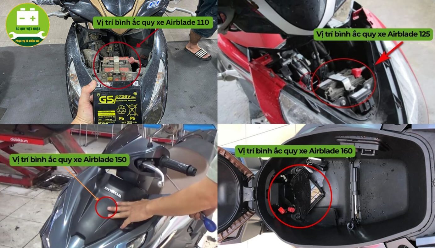 Bình ắc quy xe Airblade nằm ở đâu? Vị trí các dòng xe 110, 125, 150, 160