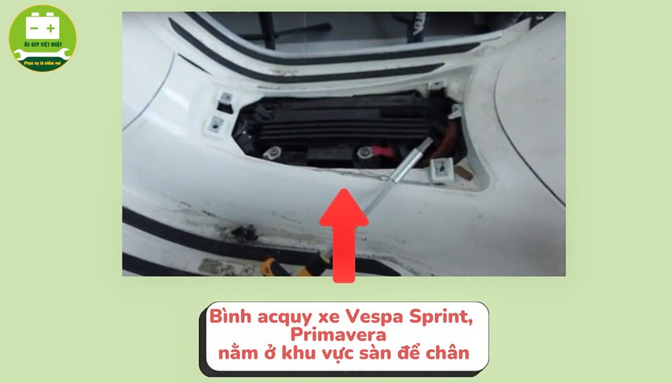 Nhiều người thường băn khoăn bình ắc quy xe Vespa Sprint nằm ở đâu hay bình ắc quy xe Vespa Primavera nằm ở đâu, bởi thiết kế của hai dòng xe này khá tương đồng. Thực tế, bình ắc quy xe máy này được đặt ở khu vực sàn để chân phía trước, gần cổ xe.